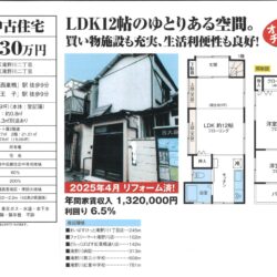 | 3DK | 建物68.03m² 土地68.89m² | 1978年10月(築47年) | 木造 |